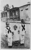 This is a snapshot taken in Ponce, Puerto Rico, in which we appear. It is a snapshot taken of the twins and myself. If I recall well, I must have been about five years old. The boys at that time, for their nice dress, would wear sailor suits. They had the white and the navy blue. |